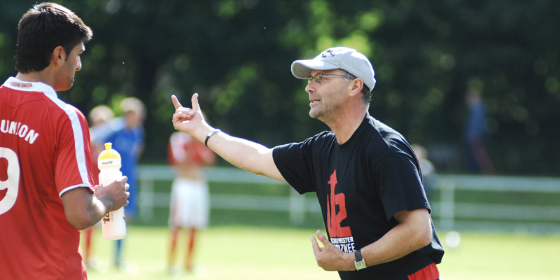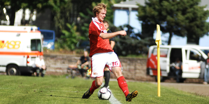 Sonntag Nachmittag in Berlin-Niederschöneweide. Sportplatz am Bruno-Bürgel-Weg an der Spree mit Blick auf das ehemalige Industriegebiet Oberschöneweide. Nebenan ein stillgelegtes Industrieareal mit ausrangierten BVG-Bussen und Warnschildern „Lebensgefahr! Freilaufende scharfe Hunde.“ Die Sportanlage selbst macht einen aufgeräumten Eindruck und ist seit dieser Oberligasaison die reguläre Heimstätte der U23 des 1. FC Union Berlin.