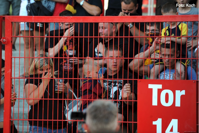 Lust auf die Europameisterschaft im nächsten Jahr kommt nicht auf. Die Fans in Polen sehen sich massiven Repressionen ausgesetzt. Ob das die jeweils richtigen Antworten auf die Probleme in den Stadien in Polen sind, sei dahingestellt. Argumente für eine Lockerung der Maßnahmen lieferten die Fans aus Szczecin jedenfalls nicht. Uwe Neuhaus gab sich im Gespräch nach dem Spiel sehr unaufgeregt: „Ich finde es nicht so schlimm. Wenn man sich in Europa umguckt, ist das fast Gang und Gebe. Die Fans haben in jedem Spiel eine solche Phase, in denen zwei Minuten auf sie geachtet wird. Und diese Zeit sollen sie bekommen.“ So kann man das sicher sehen. Allerdings grenzen solche Vorfälle diejenigen aus, die Fußball in einer Atmosphäre sehen wollen, die sich nicht in den Extremen Hooliganismus oder Langnese-Familienblock bewegt.