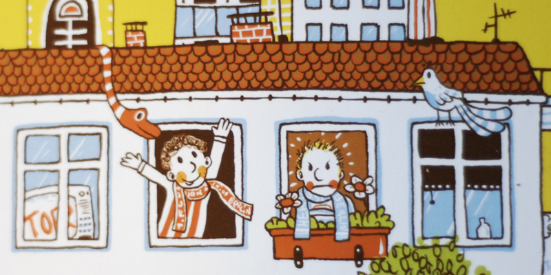Die fünf großen Farbtafeln spielen im Zoo, in einer freundlichen Wohngegend namens Pankow, im Mauerpark, im Naturkundemuseum und am Brandenburger Tor. Die Szenen sind vertraut. Wer in Berlin wohnt, hat auch alle Leute aus dem Buch schon mindestens einmal getroffen. Fil und Sharkey, den Flaschensammler, die schwangere Frau, den Kameramann, das schwule Paar, die Prinzessin, den Bauarbeiter – die kennste doch! Für Nicht-Berliner ist dieses Buch jedem Reiseführer vorzuziehen. Nach etwa einem halben Jahr steten Betrachtens war mir immer noch nicht langweilig. Im Gegenteil: Ich habe den Unioner entdeckt! Seitdem suche ich ihn auf jedem Bild. Auf mindesten vieren ist er mit drauf. Beim fünften suche ich noch.
