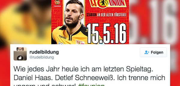 Mir wird vor allem der Abschied von Detlef Schneeweiß schwerfallen. Für mich ist er über die Jahre zu so etwas wie einem Maskottchen geworden (sorry Ritter Keule, aber isso). Warum das so ist, hat Steffi mal vor vier Jahren geschrieben. Ich packe mir also für Sonntag mal die Taschentücher ein.